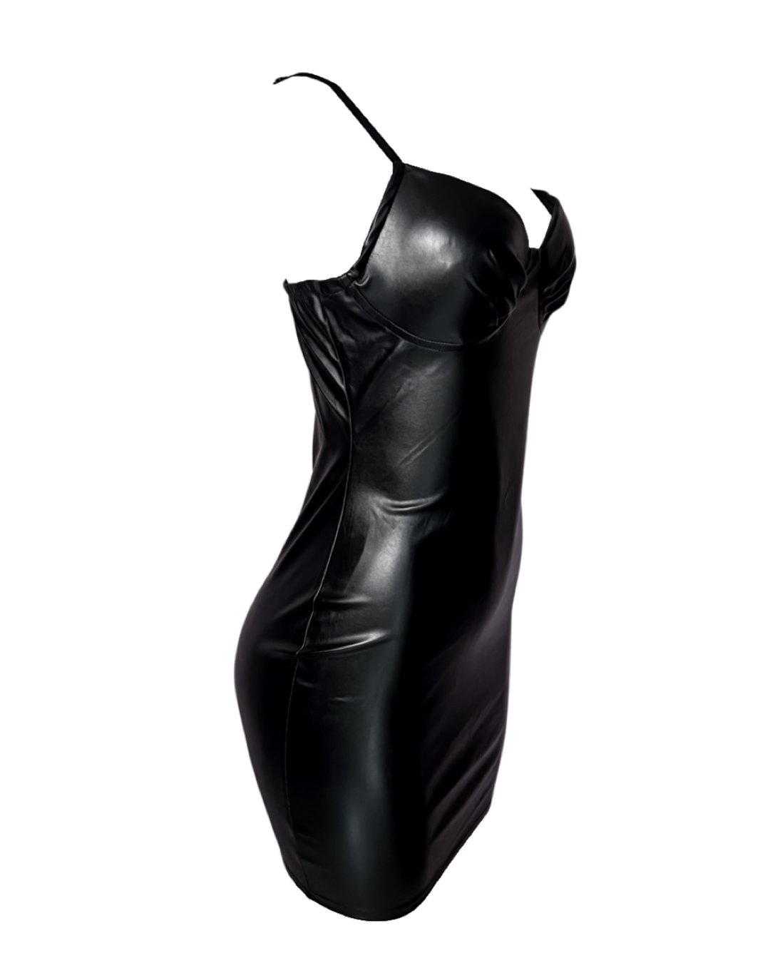 Sexy Black PU leather bodycon mini dress with padded bra and adjustable straps